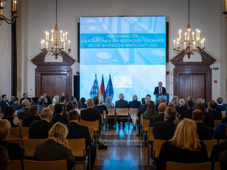 24.11.2025 | Unser LGAD-Schatzmeister Wolf Maser wurde am 19. November im Ludwig-Erhard-Festsaal des Bayerischen Staatsministeriums für Wirtschaft, Landesentwicklung und Energie mit der Staatsmedaille für besondere Verdienste um die bayerische Wirtschaft ausgezeichnet. Verliehen wurde die Auszeichnung durch Wirtschaftsminister Hubert Aiwanger.