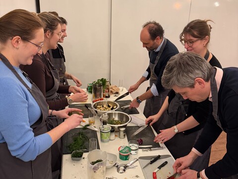 Zwischen Schneidebrettern und Pfannen entwickelte sich eine entspannte Atmosphäre, in der Kolleginnen und Kollegen aus allen Bereichen ins Gespräch kamen und sich besser kennenlernen konnten. Ein Abend, der einmal mehr gezeigt hat, wie gemeinsame Erlebnisse den Teamgeist stärken und den Start ins neue Jahr besonders machen.